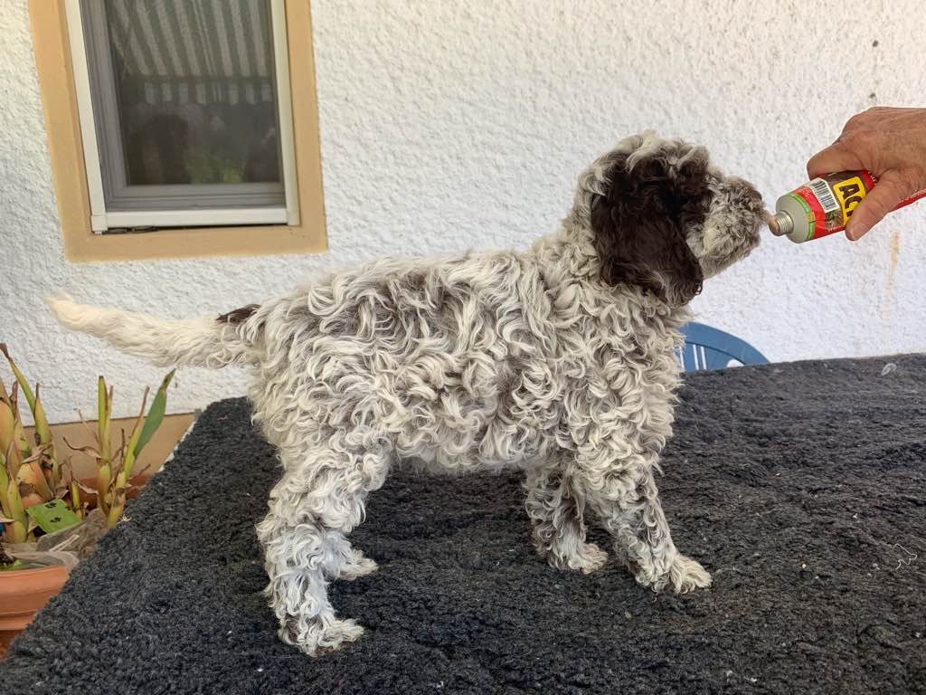 Farbe: Roano-Marrone, Fell-Typ: Gelockt, Fell-Muster: Normal