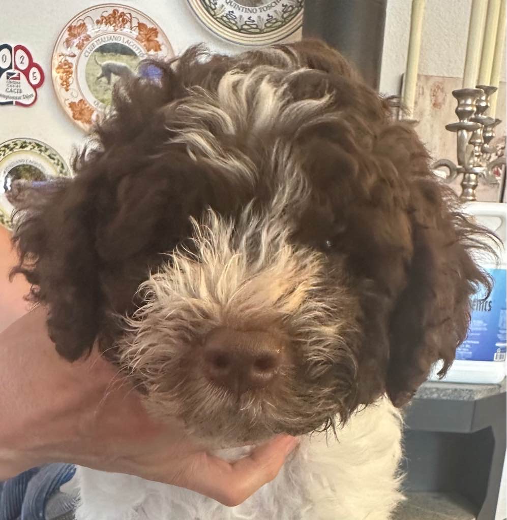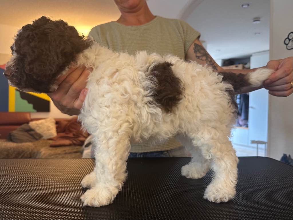 Farbe: Bianco-Marrone, Fell-Typ: Gelockt, Fell-Muster: Normal